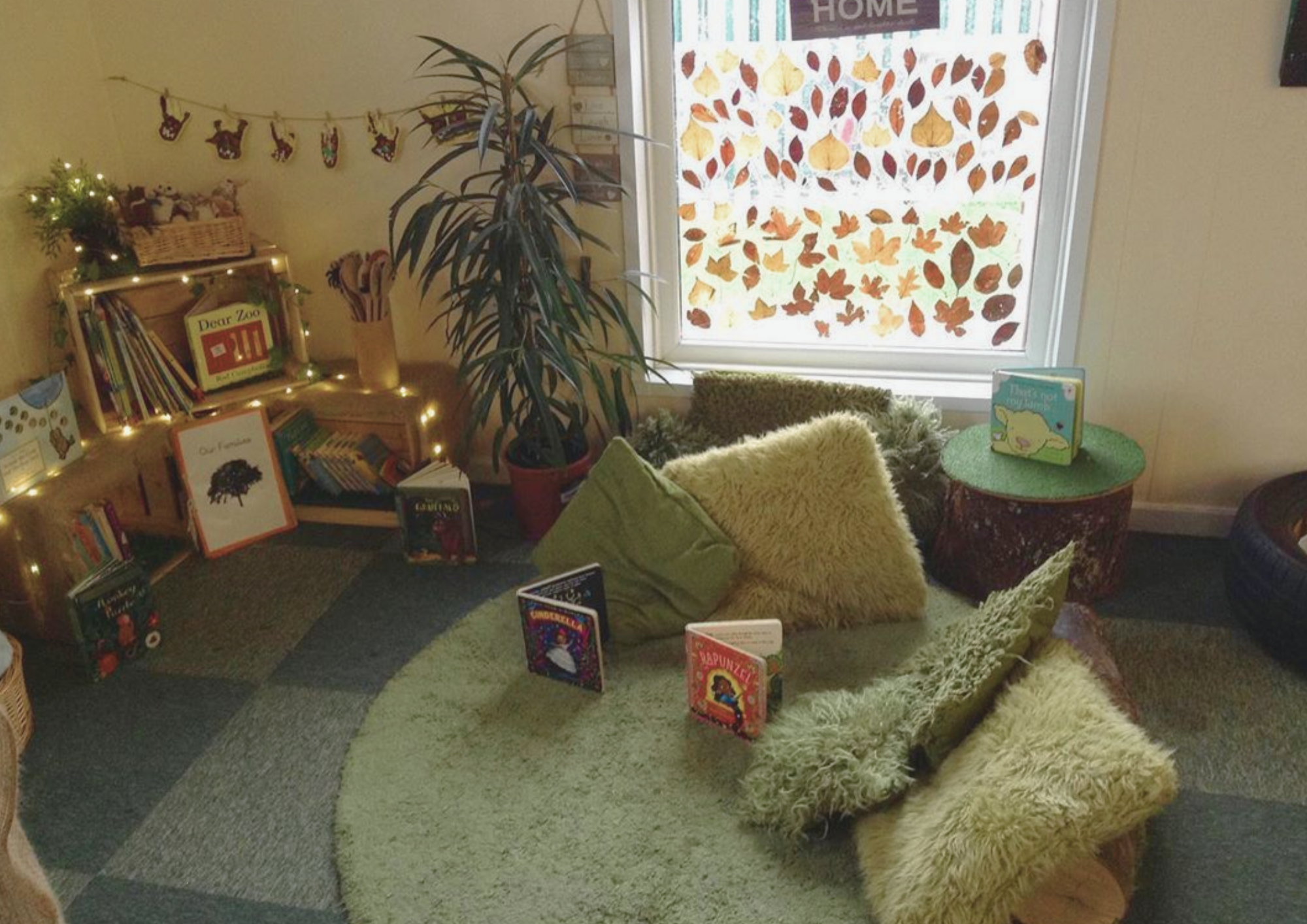 Aesthetics is key. Make it comfortable and inviting. The risk is to fill the area with too many books and when this happens stories get lost - consider having 10 books out and rotate them depending on conversations and interests. Experiment with different lighting (remember ‘autonomy’) and even take them shopping for a diffuser so it smells good!
